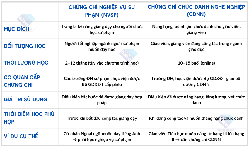 Phân biệt chứng chỉ Nghiệp vụ sư phạm và chứng chỉ Chức danh nghề nghiệp.